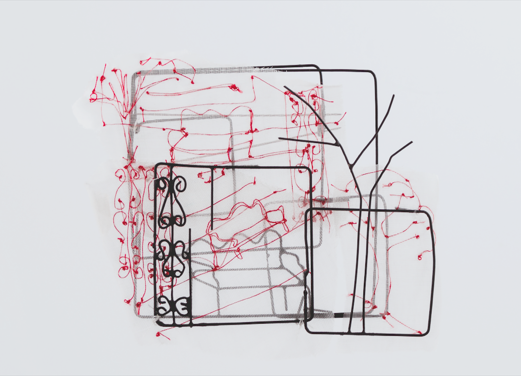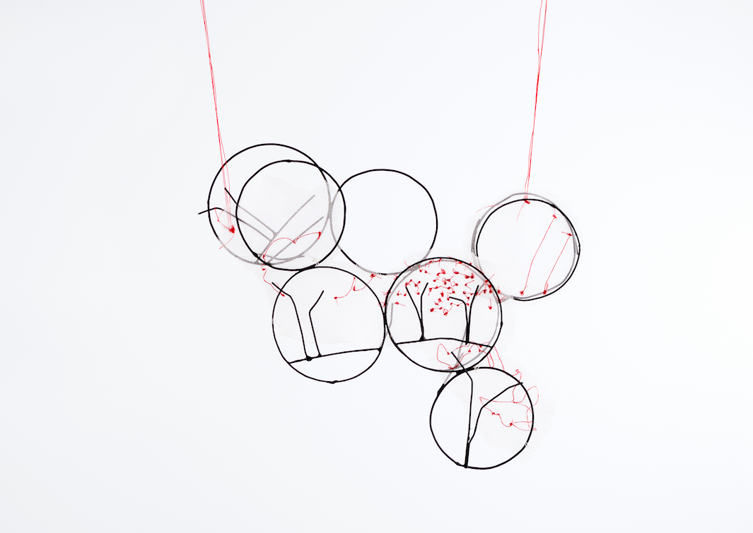 Constructed Necklace, Iron, Textile, Polyester Thread, 28 x 17.7 x .3cm, 2017