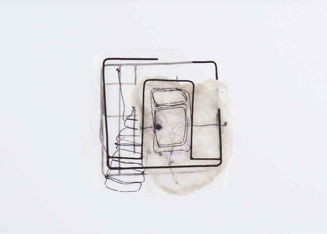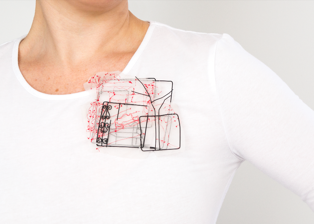 Brooch constructed, Iron, Textile, Polyester thread.
