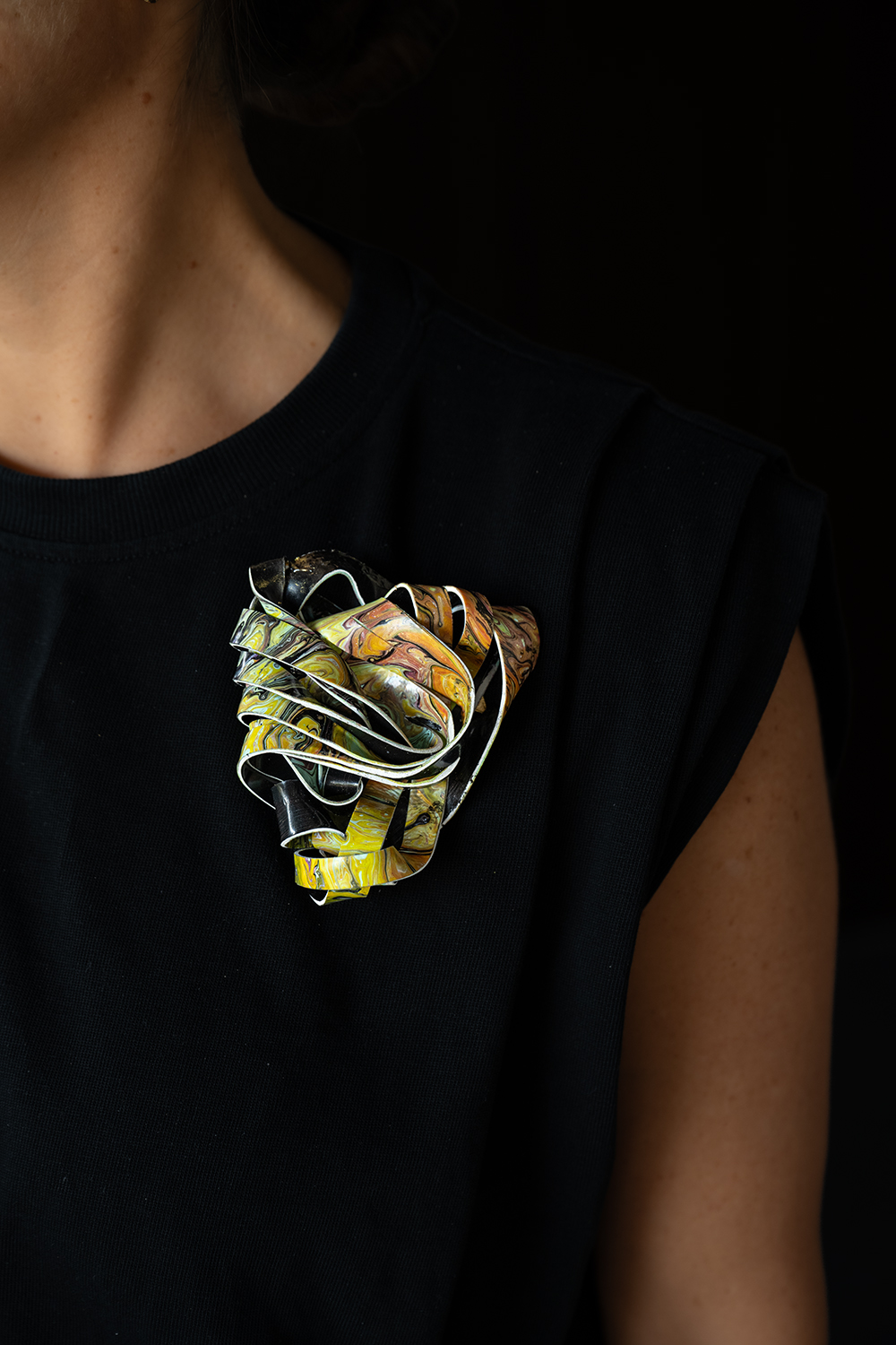 2025 Brooch Acrylic paint, impasto, texture media, pouring media, brass, 24k gold plated, Stainless steel