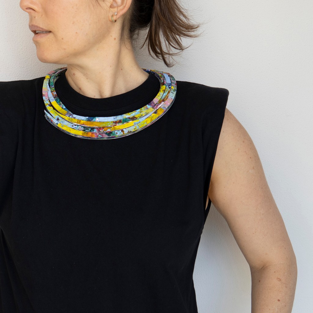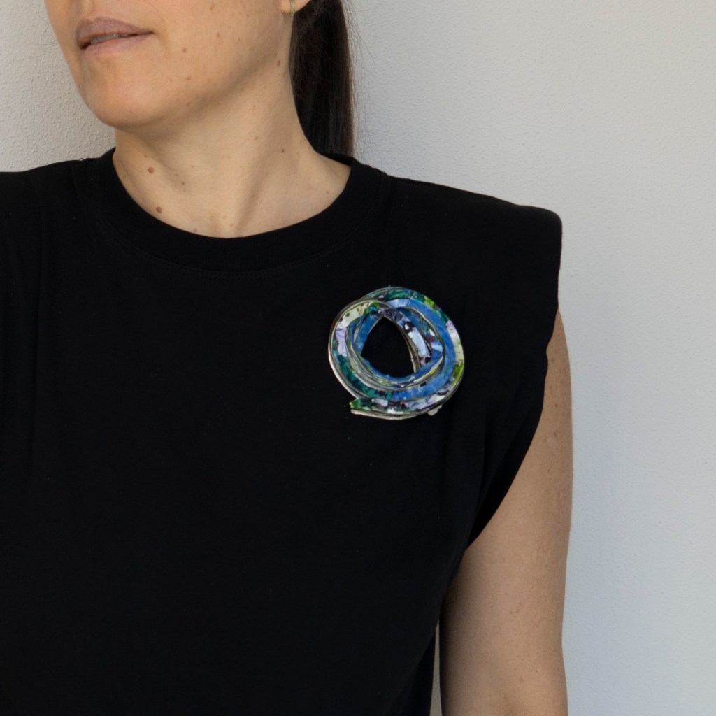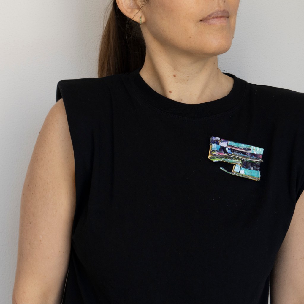 Acrylic paint, Brass, gold leaf, white metal findings stailess steel